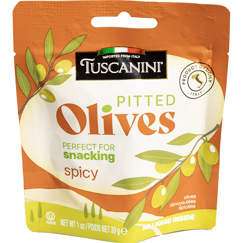 / Pitted Olives – Snack Pouch 1oz Spicy ‘Tuscanini’ NETT!